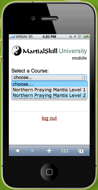 MartialSkill University Mobile App Interface